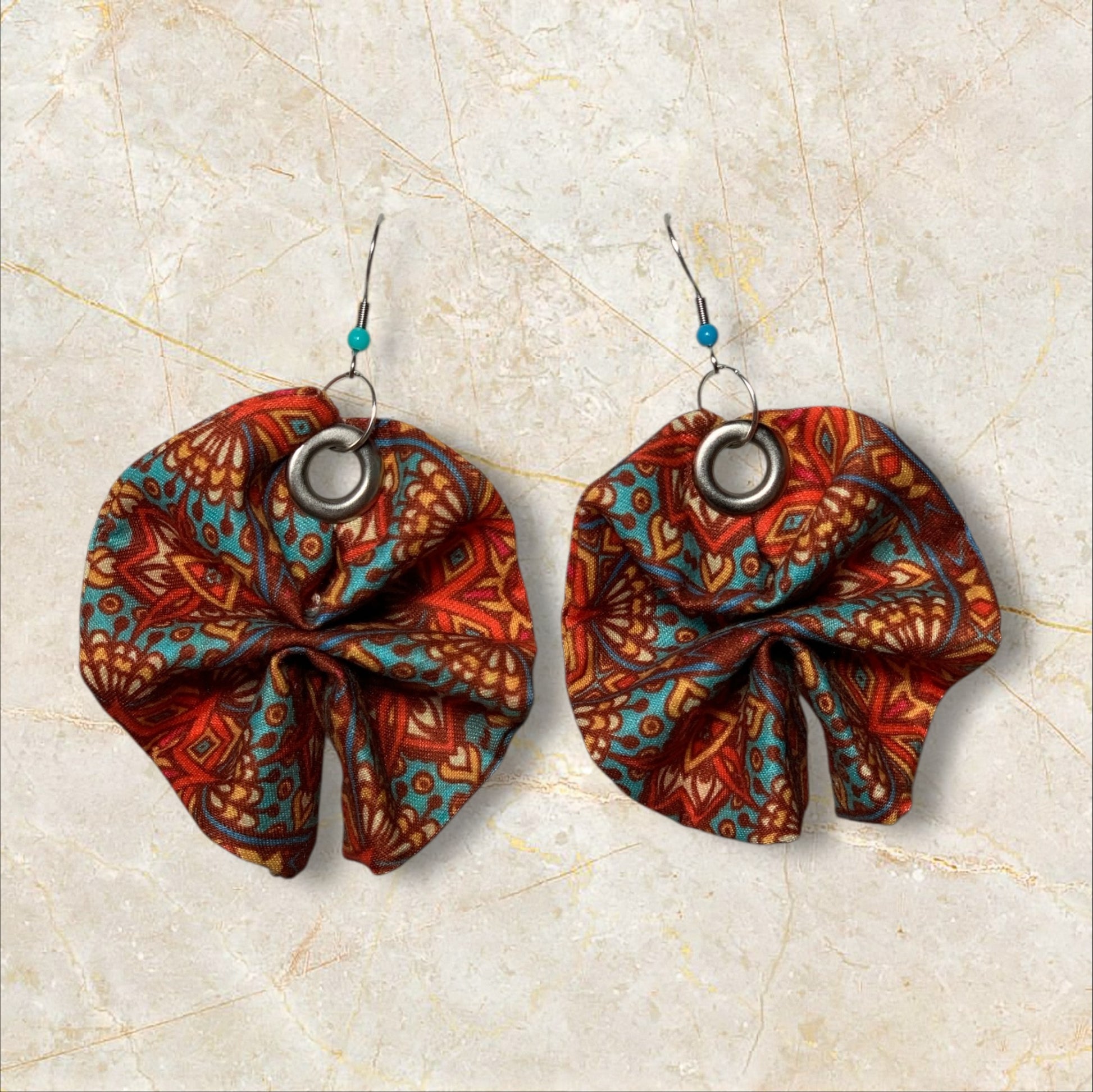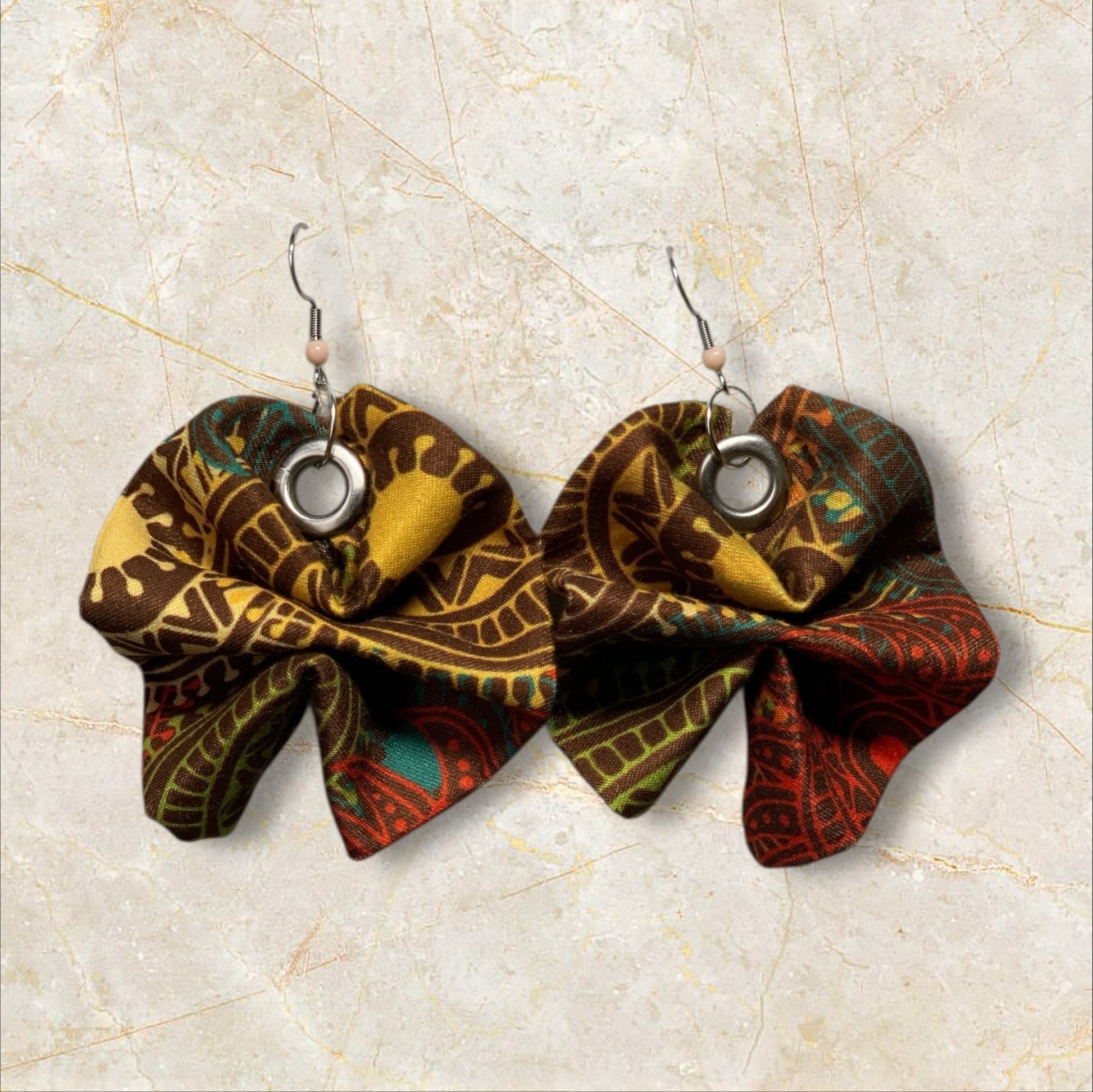 These Ankara fabric earrings showcase striking patterns and rich textures of traditional African textiles. They sway beautifully while remaining feather-light for all day comfort. Whether dressing up or adding flair to a casual look, these earrings make a statement with cultural elegance.