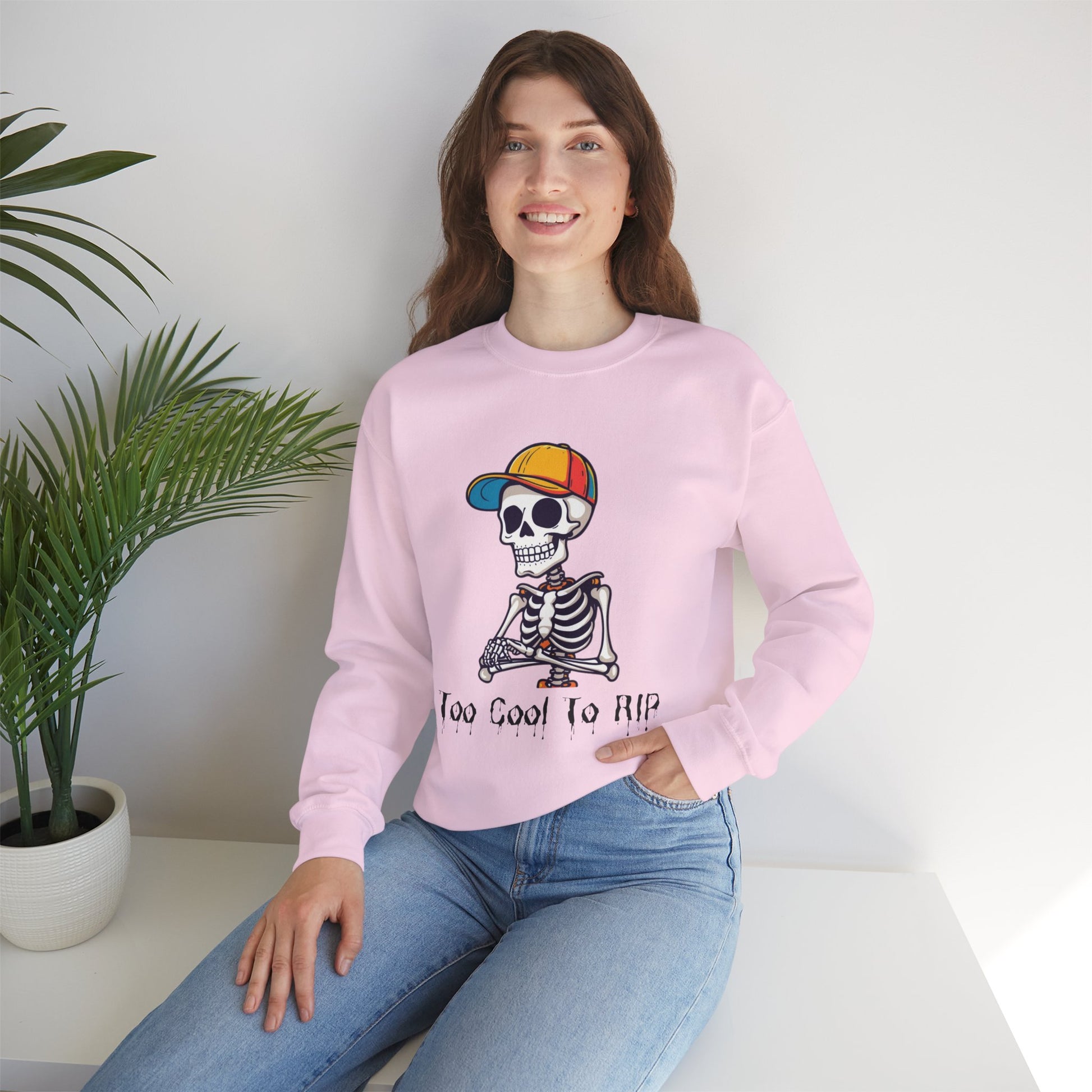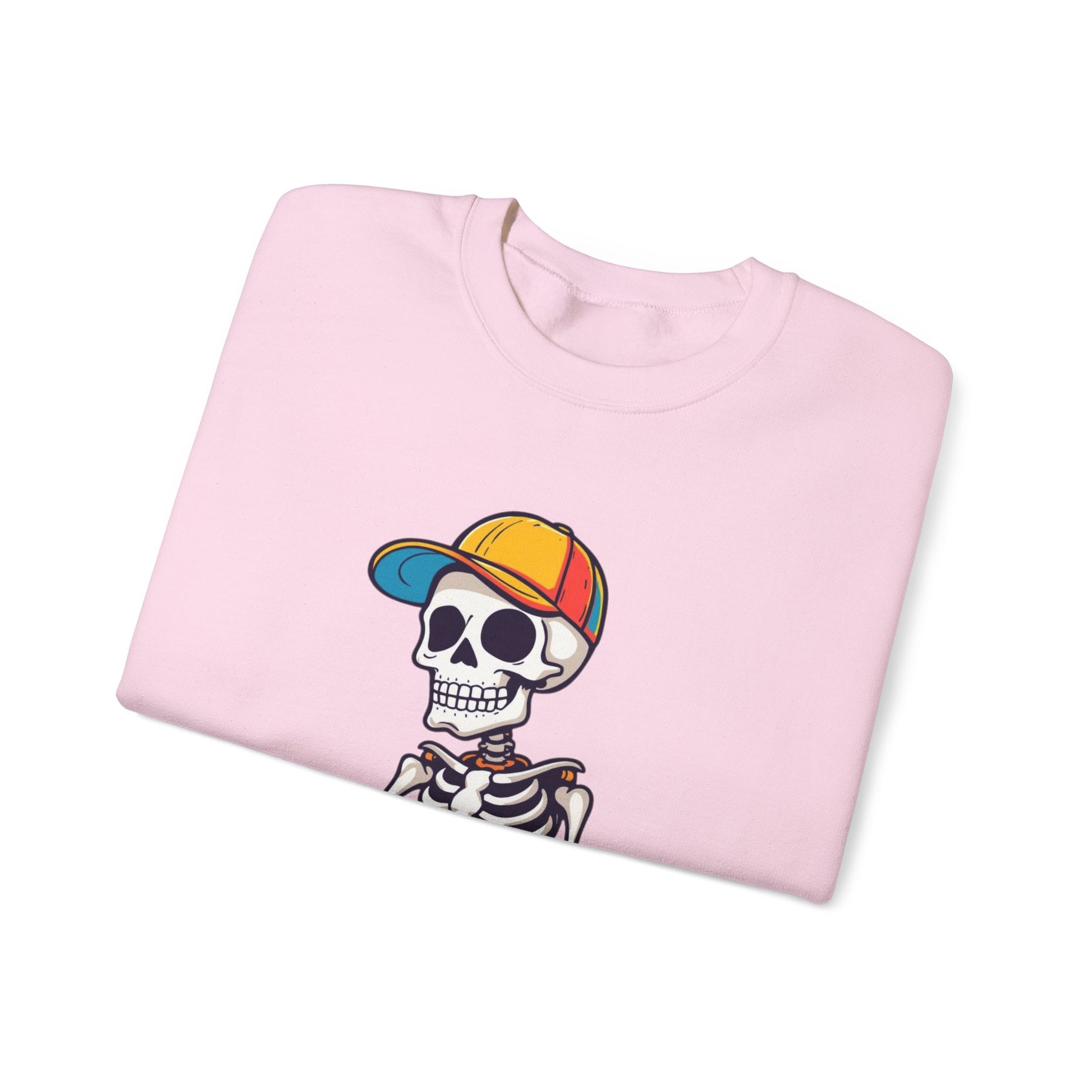This stylish Unisex Heavy Blend™ Crewneck Sweatshirt features a laid-back skeleton with serious style. It is a cozy piece that brings streetwear edge to spooky season—perfect for those who are Too Cool to RIP. Soft, bold, and built for lounging or flexing. Embrace your individuality while staying warm and comfortable.